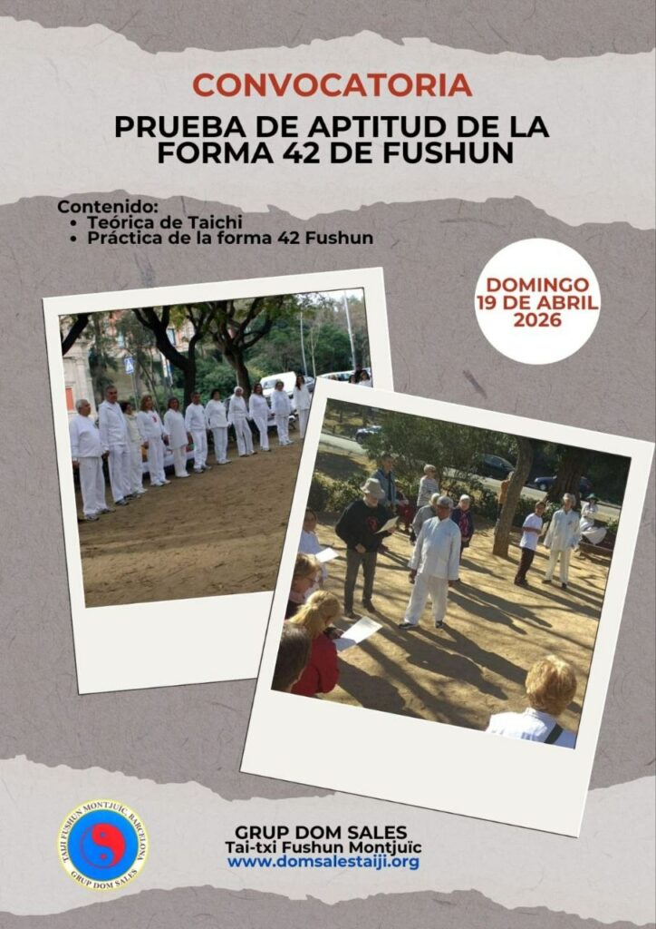 Como cada año se realizarán las pruebas de aptitud que consisten en una prueba teórica de conocimientos del Tai-Chi y una práctica de la Forma 42 de Fushun que Dom Sales dio a conocer en Barcelona hace más de 30 años.
